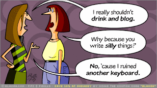 El blog no oficial sobre "tebeos" en la blogosfera blaugh.com propone esta "reflexión" para los que nos dedicamos a escribir blogs sobre vinos: especialmente dedicado a Carlos ,de Roco & Wines, quien tiene por costumbre escribir sus comentarios con una copa en las manos, ¡cerca de su teclado!