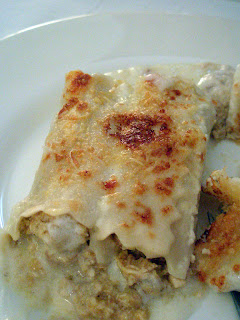 De segundo llegaron los exquisitos canelones que, en la tradición catalana, se acogen a la "protección" de Rossini. Les llamamos así, "canelones Rossini", pues parece ser que los introdujo el genial músico en una visita a Barcelona. Como véis, no se parecen en nada a los italianos, mucho más largos y que se suelen comer por parejas y muchas veces con tomate. Aquí la pasta es cuadrada, mucho más corta, se embute con las más selectas carnes (antes iban con los restos del capón del día de Navidad y las carnes del cerdo y la ternera que habían moldeado la sopa de ese mismo día) y se le añade su buen pellizco de trufa. Con su bechamel y un toque de horno "a la mantequilla" y de crosta de queso, queda algo tan delicioso como lo que véis a vuestra derecha. Si lo primero es mérito de mi cuñada Marina y lo segundo de mi suegra Antònia, los vinos suelen ser mi responsabilidad. Y vaya una, la elección de un buen acompañamiento para lo que he descrito. Un buen cava o champagne quedaría bien, sin duda, pero a mí me tira más, por la farsa del canelón, un tinto con personalidad y calidad contrastadas.