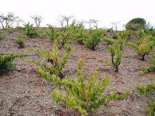 El programa de este pasado viernes, 10 de febrero de 2007, se ha dedicado, en forma íntegra (salvo las secciones habituales, en que se habla de variados vinos) a la Bodega Mas Perinet (a caballo entre las DOs Priorat y Montsant), uno de cuyos propietarios es Joan Manuel Serrat. Se trata de algo que no había sucedido hasta ahora, en que los preciosos y carísimos minutos de esta televisión pública, que pagamos entre todos con nuestros impuestos, se habían repartido entre variadas pequeñas publicidades, nacionales y extranjeras. No es mi objetivo, hoy, hablar de las cualidades de los vinos de Mas Perinet, pero sí lo es decir que no me parece de recibo que el 70% del programa se haya dedicado a los dos vinos de una sola bodega. Es una forma inaceptable de publicidad a cara descubierta, pagada con los dineros de todos, en una televisión pública. Habrán hecho una gigantesca inversión (como se ha reconocido en el programa), tendrán necesidad de vender miles de botellas de sus vinos para amortizar (como también se ha dicho), pero yo les pido que lo hagan de otra manera: aumentando la calidad de sus vinos y vendiendo, así, más. No critico la presencia de Serrat ("a bodas me convidan", habrá quizás pensado), sino la decisión, en mi opinión muy desacertada, de los responsables del programa, de favorecer de una forma tan arbitraria y descarada a una sola bodega. En segundo lugar, os pido que os fijéis en la foto superior, que muestra los viñedos de Mas Perinet y observéis el tremendo contraste que existe entre el terreno de viñas y el monte circundante. Mas Perinet es absolutamente artificial. Las famosas terrazas del Priorat son las que son, están donde están y tienen las cepas antiguas que tienen. Las que veis en la foto inferior, por ejemplo.