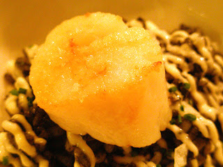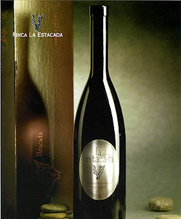 Acompañé el platillo con una botella de Finca La Estacada Syrah-Merlot Cosecha de Familia 2004. Me ahorro los detalles que encontraréis, y bien cumplidos, en su página web. Se trata de una empresa que comercializa como Vino de la Tierra de Castilla (en Tarancón), con viñedos relativamente jóvenes sobre los 500 metros de altitud. Este ensamblaje con predominio de la syrah es uno de los destacados de la casa (13% y una temperatura de servicio sobre los 15-16ºC): tiene una capa media alta, es de color cárdeno intenso, bastante cubierto, con un ribete en degradado del mismo color. A copa parada, ofrece unos francos aromas a tabaco, algo de cuero, monte bajo, cerezas maduras y mermelada de arándanos. Es un vino que te llena el paladar, jugoso, con taninos nada secantes, casi carnosos, apetitoso y de trago agradable. En posgusto y con la ventilación, surgen aromas de ahumados, de zarzamora y matorral (muy agradables, la verdad) y algo de regaliz. Un vino francamente recomendable si tenemos en cuenta que se comercializa sobre los 7-8 euros.