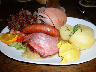 Max und Moritz sigue, no sé por qué extraño milagro, abierto. En la Oranienstr.162, el local rezuma el espíritu del Berlín de finales del XIX e inicios del XX, con su comida de campo, su cerveza blanca, las mesas y sillas de madera, el bullicio absoluto...una experiencia que hay que vivir, vaya. Yo me tomé el surtido rústico preparado por la Viuda Bolte, con su codillo de cerdo, su costilla ahumada, su salsicha, col fermentada y patatas hervidas, con abundante mostaza. Estaba impresionante. Los cofrades de viaje que optaron por el filete de buey con salsa de vino y cebolletas no quedaron tampoco decepcionados. Para beber, corrió abundante weizenbier, en este caso, sólo de trigo, menos densa que la de Lindenbräu, pero igualmente sabrosa, con más aromas frutales (manzana y pera conference), un posgusto algo amargoso y abundantes notas de levaduras y de trigo. Una delicia.