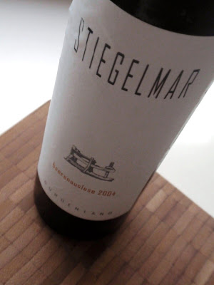 ...the wine was perfect, the moment was perfect, and it was perfect because the wine was content not to occupy my whole attention, but rather to keep me company". Eso fue exactamente lo que pasó con la combinación que propuse entre este delicado pastel de melocotón y el Beerenauslese 2004 de Stiegelmar. Con bodega en Gols (Austria) y una fuerte dedicación durante cuatro generaciones a las variedades características de la zona (más alguna foránea), sobresale entre sus vinos, la dedicación a la Muskat Ottonel, una variedad de moscatel de grano menudo. Un BA de moscatel ottonel (¡el muscat es la variedad preferida de Theise!) tenía que ser un candidato ideal para lo que buscaba. Vendimia seleccionada el 17 de noviembre de un solo pago (en Podersdorf), fermentación larga y controlada, reposo y embotellado al año, este BA posee 12% y 105gr/L de azúcar residual. Lo tomamos sobre los 10-11ºC y nos dió ese momento "Theise" tan deseado, aunque no siempre encontrado: de un color ambarino discreto, es un vino de matices moderados, no muy concentrados. Orejones de melocotón, aires de la moscatel suavemente perfilados, un poquitín de miel de milflores y un paladar amplio, jugoso y generoso, que ve invadidos todos sus recovecos por la suave brisa del lago que ha visto crecer estas uvas. No es un vino, en efecto, que exija gran concentración o que pida a gritos soledad y meditación, sino un vino ideal para acompañar un buen postre, en agradable compañía, charla de sobremesa y en día de acción de gracias. Es un vino que te acompaña fielmente y no te pide mucho a cambio. Bueno sí, 14 euros la botella, pero para lo que nos dió parece un precio casi ridículo.